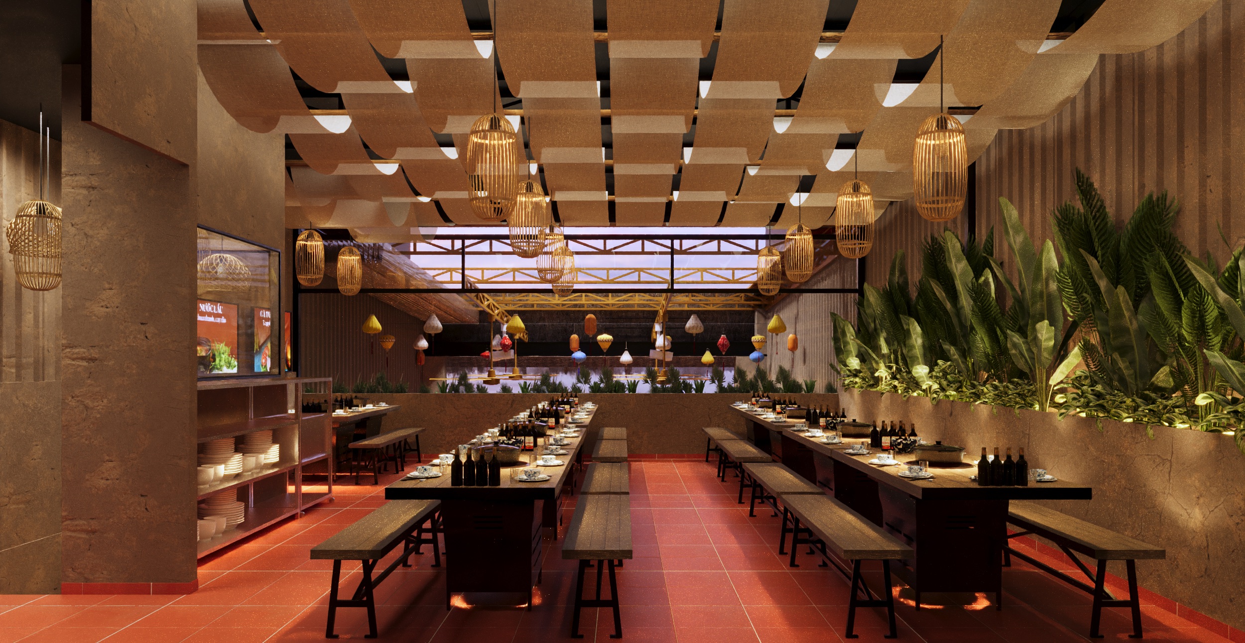 - Thiết kế “Sân Đình giữa phố”: Mang phong cách mở, thoáng đãng, giúp thực khách thoải mái ăn uống mà không cảm thấy bí bách.